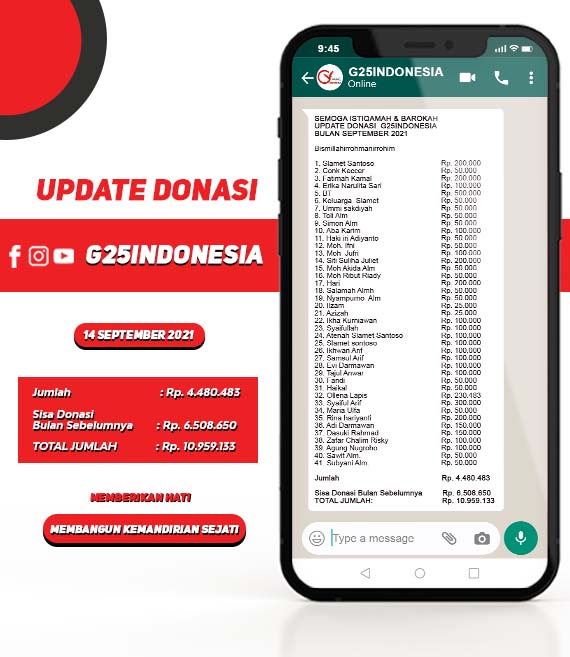 G25INDONESIA Bapaknya Terkena Stroke, G25INDONESIA Beri Modal Sariati untuk Merintis Usaha Bangkalan- Yayasan Gerakan Dualima Indonesia atau G25Indonesia kembali melakukan realisasi bantuan super mikro kepada pemetik manfaat. Kali ini, pemetik manfaat program pemberdayaan ekonomi super mikro itu bernama Sariati, warga Dusun Batu Rubuh Desa Kebun Kecamatan Kamal Kabupaten Bangkalan. Minggu (23/01/2022). Dokumentasi Relawan G25INDONESIA melakuakan […]